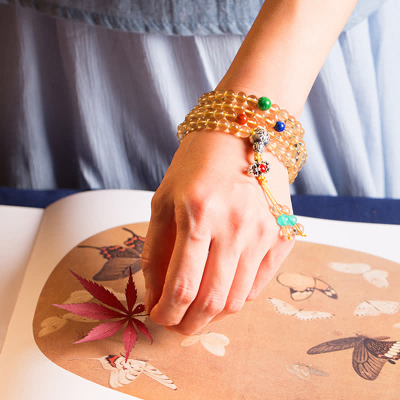 Known as the "Merchant's Stone," Citrine infuses this mala with vibrant solar energy. This golden gemstone is revered for its ability to manifest prosperity and stimulate the solar plexus chakra. The natural stone prayer beads work to dispel negative energy, boost confidence, and invite joyful abundance into your life – making it perfect for meditations focused on abundance and self-worth.