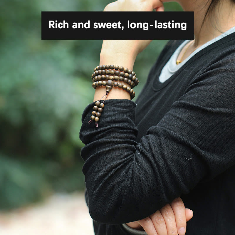 Our bracelet features rare Qinan agarwood buried deep in soil from Nha Trang, Vietnam, known for its rich oil content and long-lasting sweet fragrance. This authenticity ensures a superior spiritual and aromatic experience.