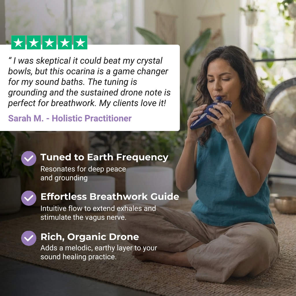 The sound of the ocarina is melodious and enchanting—it fills the room with a peaceful, uplifting energy. Playing it helps me feel more connected, relaxed, and in tune with the present moment. The craftsmanship is exquisite, and the sound quality is truly magical. It's a fantastic instrument for creativity and mindfulness.
