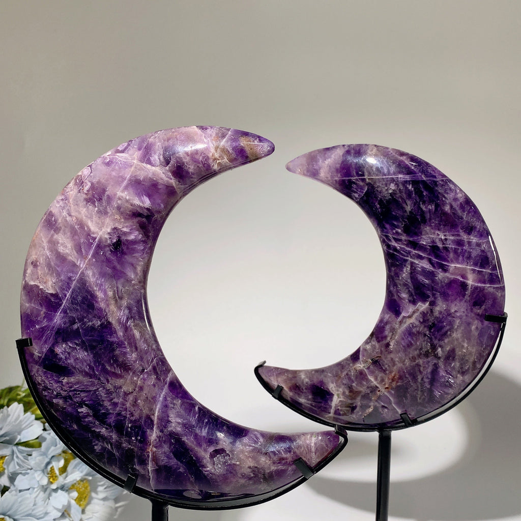 Absolutely! The amethyst moon is a wonderful companion for daily meditation, helping to deepen relaxation and spiritual awareness. Its medium size of 16cm (approx. 6.3 inches) makes it easy to keep nearby on your altar or meditation table.