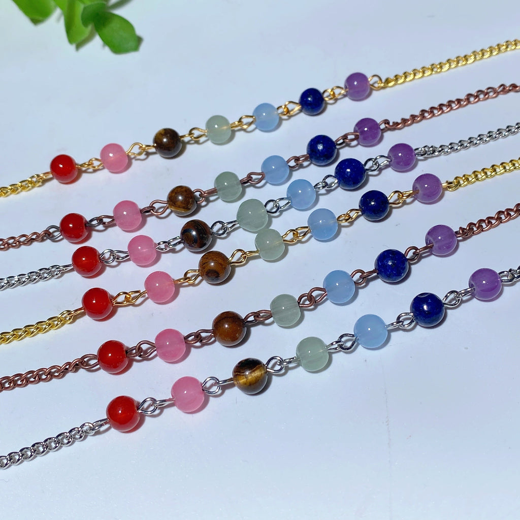 This chakra crystal chain combines multi-colored stones that support balancing your energy centers, enhancing healing, emotional clarity, and spiritual growth.