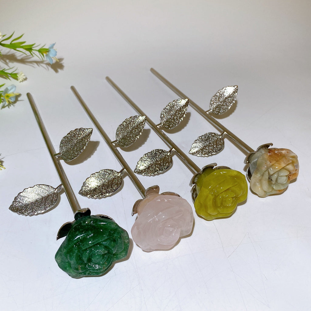 Absolutely! Each flower is hand-carved from authentic natural crystals and features a polished silver stem and leaf, ensuring you receive a genuine and beautifully crafted healing figurine.