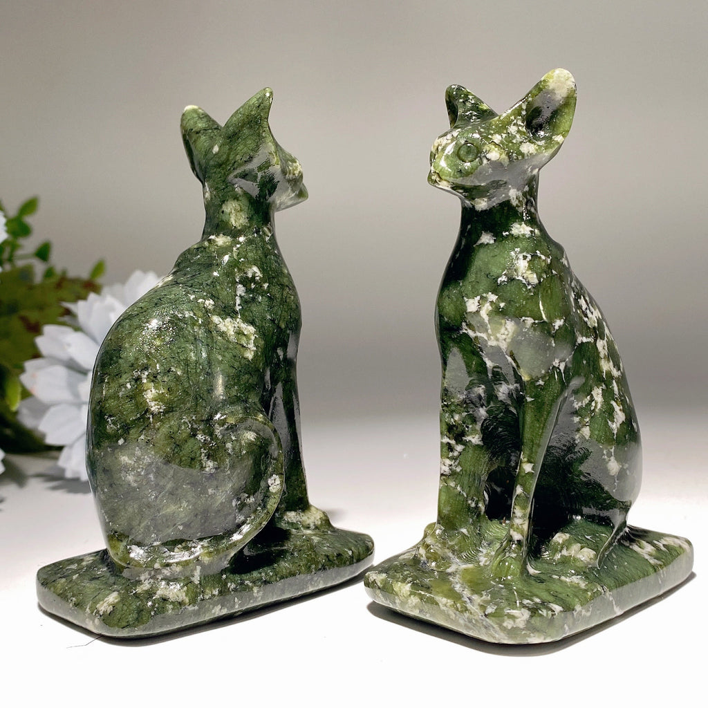 The Serpentine cat carving is believed to bring protective energy, promote emotional cleansing, and enhance calming vibes in your space. It serves as a healing gemstone that supports spiritual balance and personal growth.