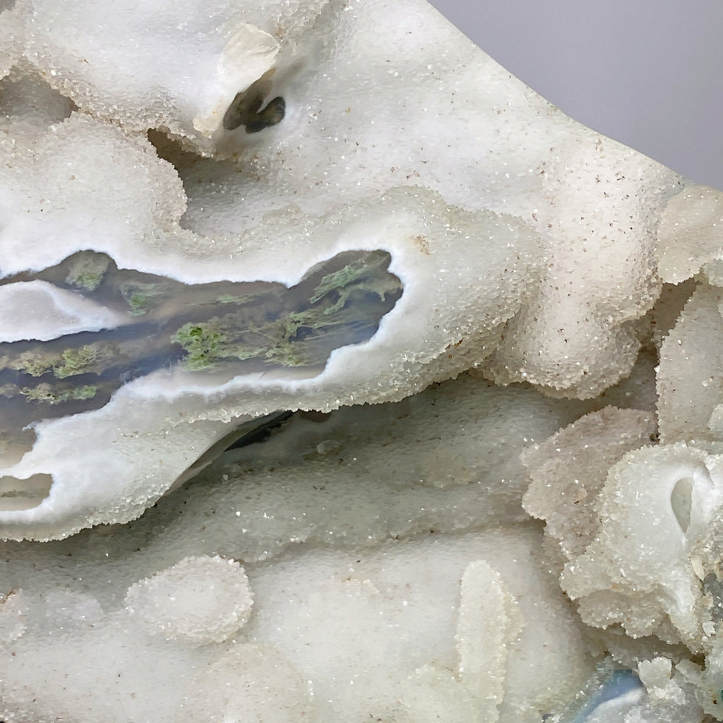 Yes, this piece is crafted from genuine druzy moss agate, featuring natural mineral inclusions and unique patterns. Each carving is unique and unedited, preserving the raw beauty and energetic properties of the stone.