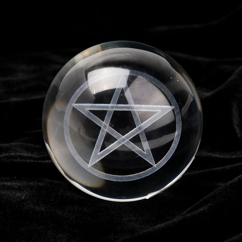 Crafted from high-quality clear crystal glass, this sphere possesses exceptional clarity that allows light to dance through its surface, creating mesmerizing reflections when placed in sunlight or candlelight. The pentagram symbol—revered across numerous spiritual traditions—amplifies the sphere's natural properties.