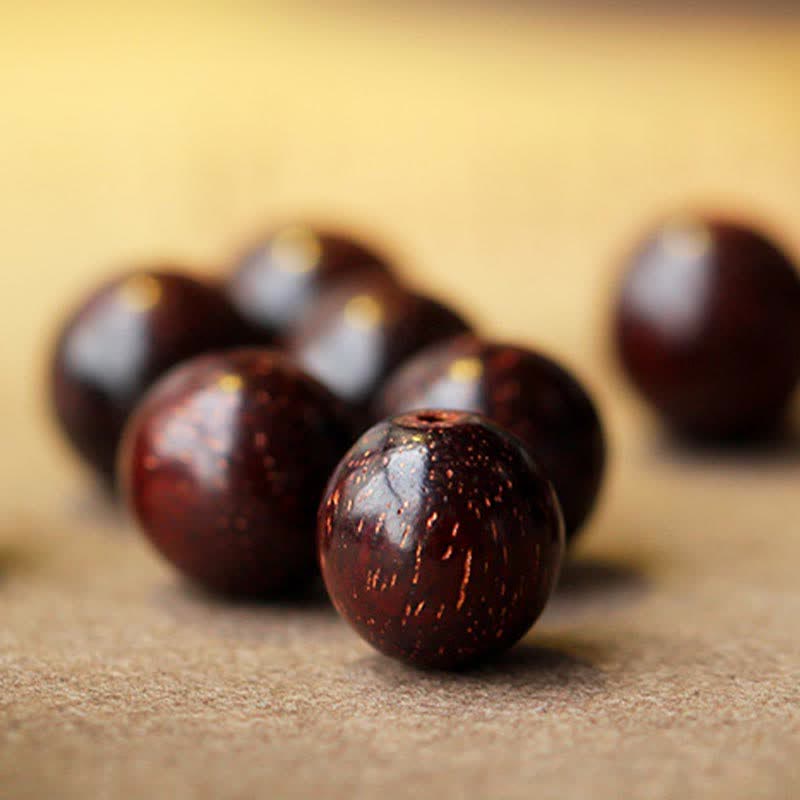 This bracelet combines Hetian gray jade, known to bring calm, peace, and protection, with small leaf red sandalwood that offers longevity, relaxation, and protection against negative energies. Wearing it promotes spiritual balance and wellness.