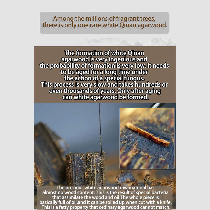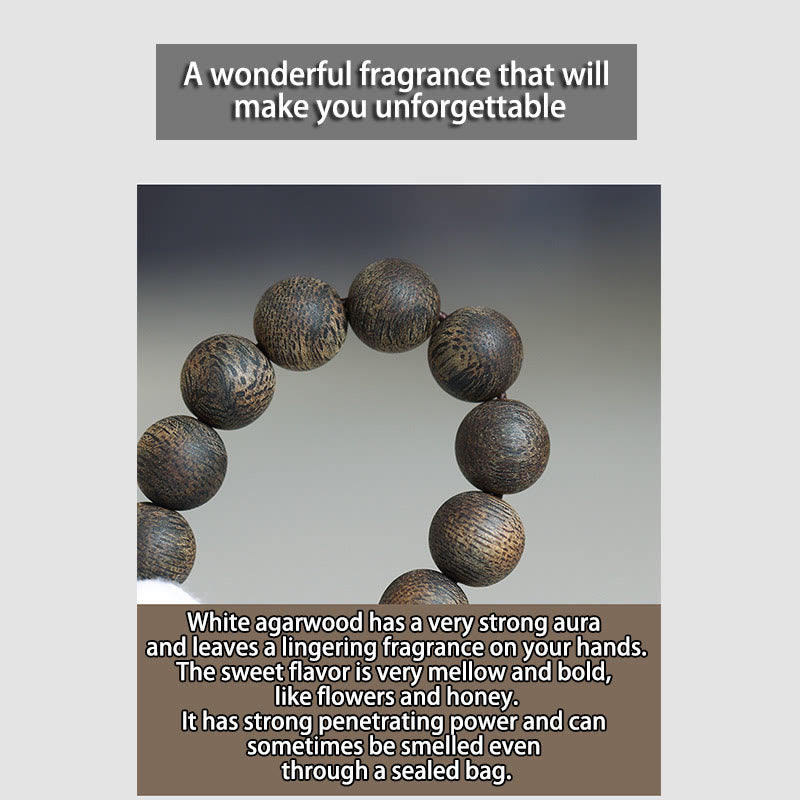 The White Qinan Agarwood used in this bracelet is treasured for its calming and psychoactive properties. It helps balance chi, relieves anxiety, calms the mind, and invokes a peaceful, strong energy ideal for meditation and spiritual practices.