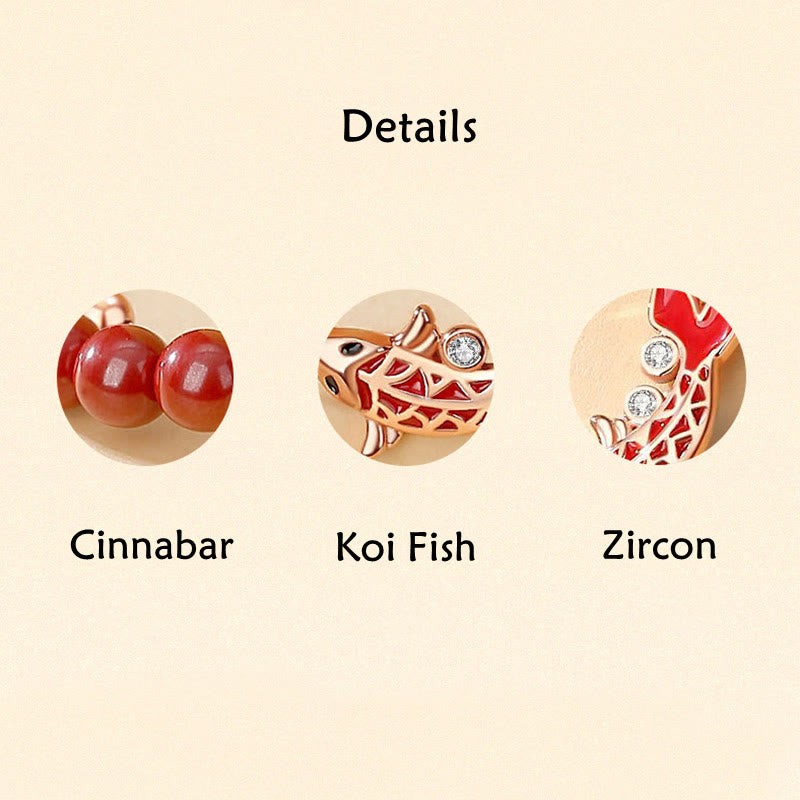 This double layer bracelet fits wrists measuring between 5.5 to 7.5 inches (approx. 14-19 cm). The Koi Fish charm is approximately 9x17mm (0.35x0.67 inches), and the cinnabar beads are about 5mm (0.2 inches) in diameter, providing a comfortable and elegant fit.