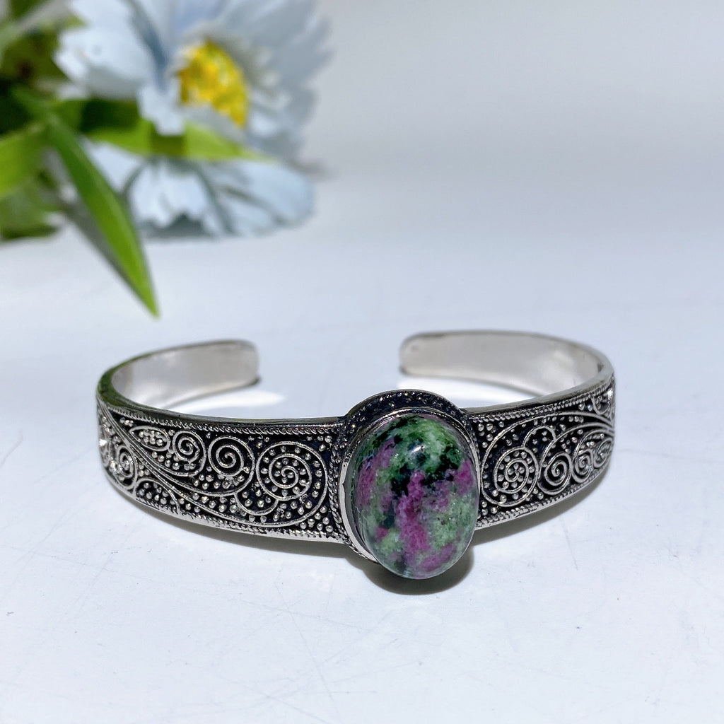 Each silver crystal bangle features natural gemstones known for their unique spiritual properties. They can enhance your meditation, promote spiritual protection, and support emotional balance, depending on the specific stone selected.
