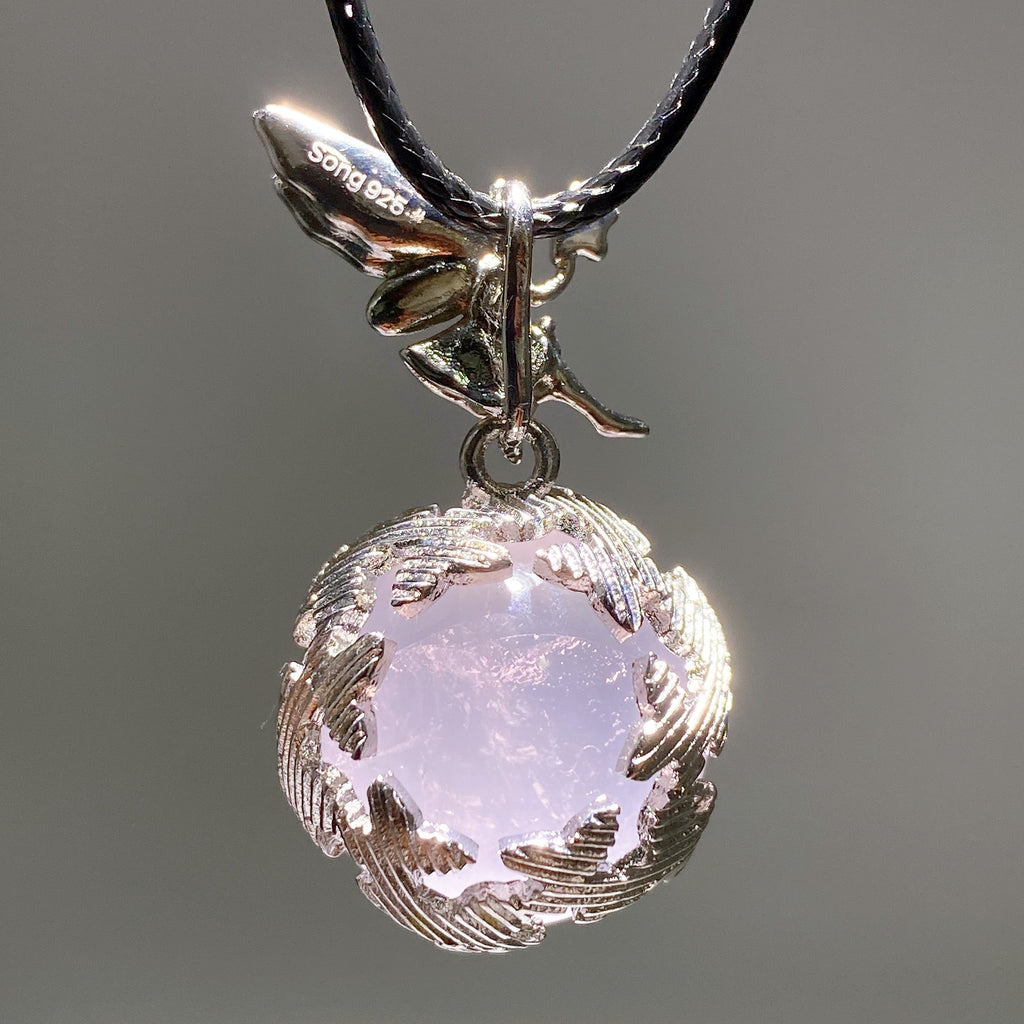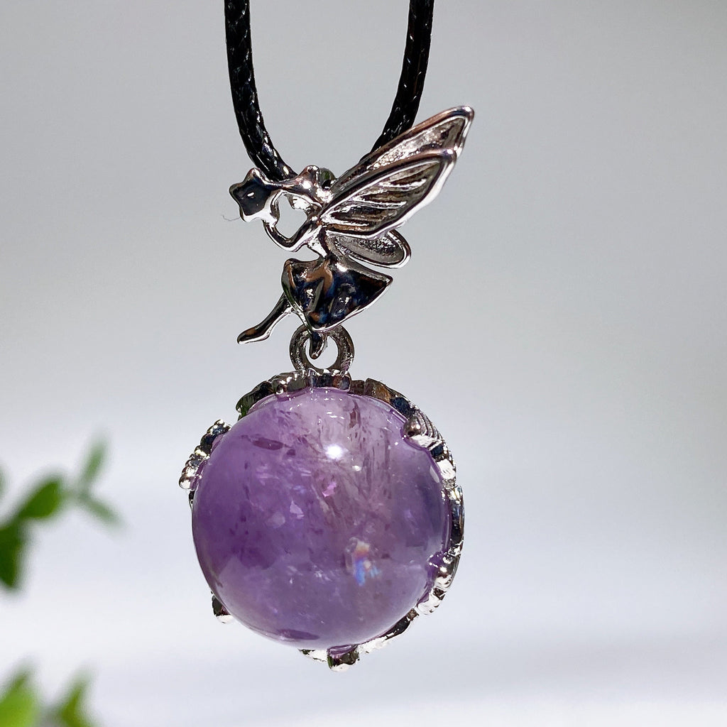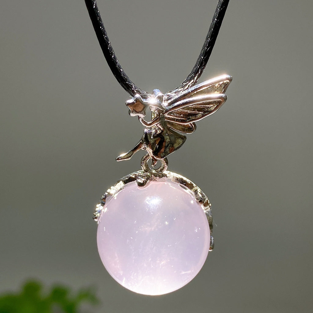 This pendant measures approximately 20mm (0.79 inches) in diameter and weighs about 20 grams (0.7 ounces). It feels comfortably lightweight for daily wear, with a smooth polished finish and elegant fairy detailing in silver-tone metal.