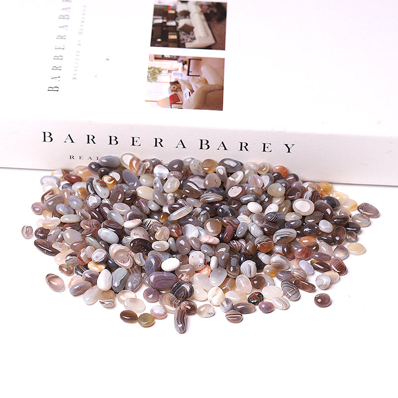 Banded agate chips are known for grounding and stabilizing energies. They help enhance emotional balance and promote calmness, making them great for meditation and decoration.