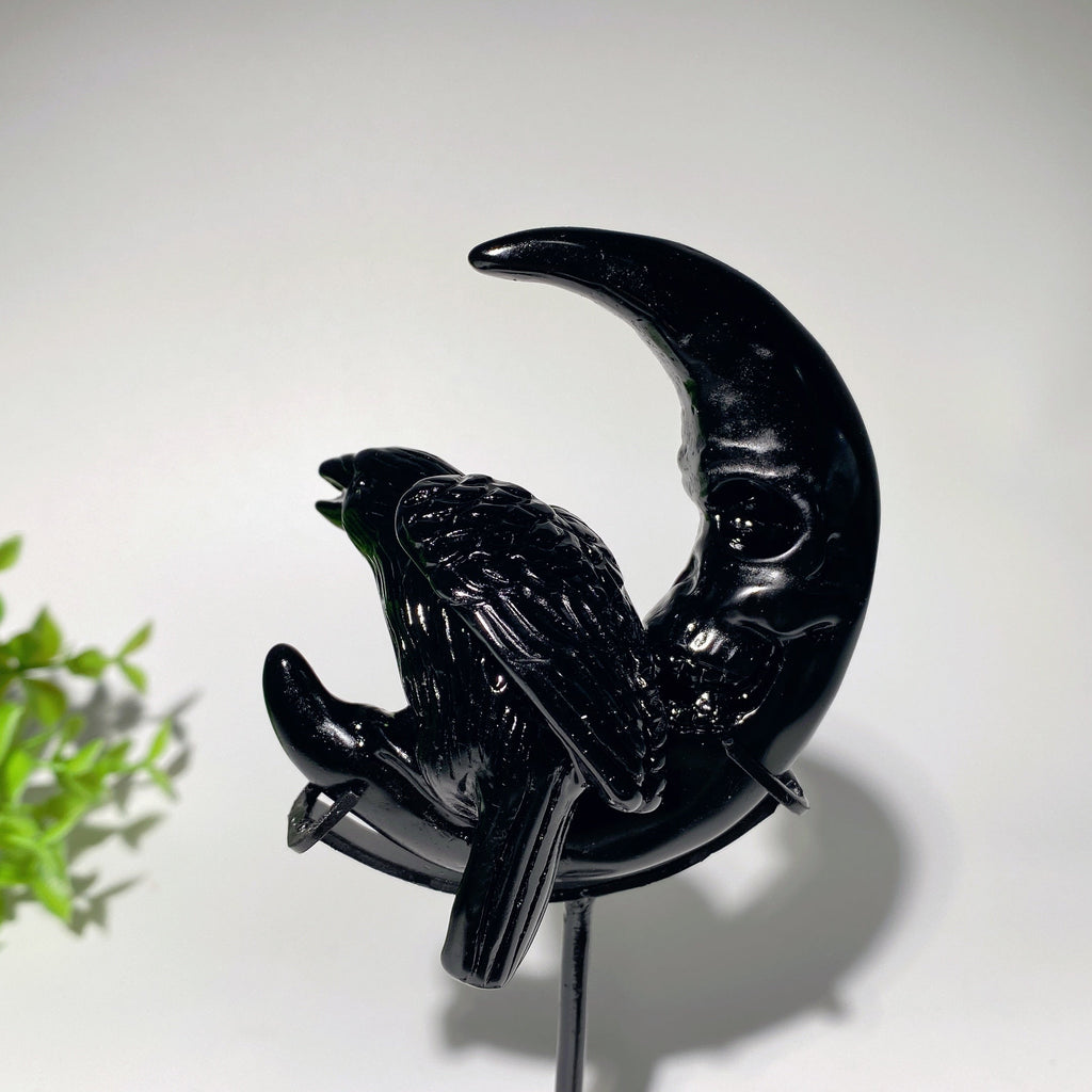 This black obsidian figurine combines the protective energy of the raven with the intuitive symbolism of the moon. It is believed to absorb negative energies, promote emotional healing, and enhance intuition, making it a powerful addition to your spiritual space.