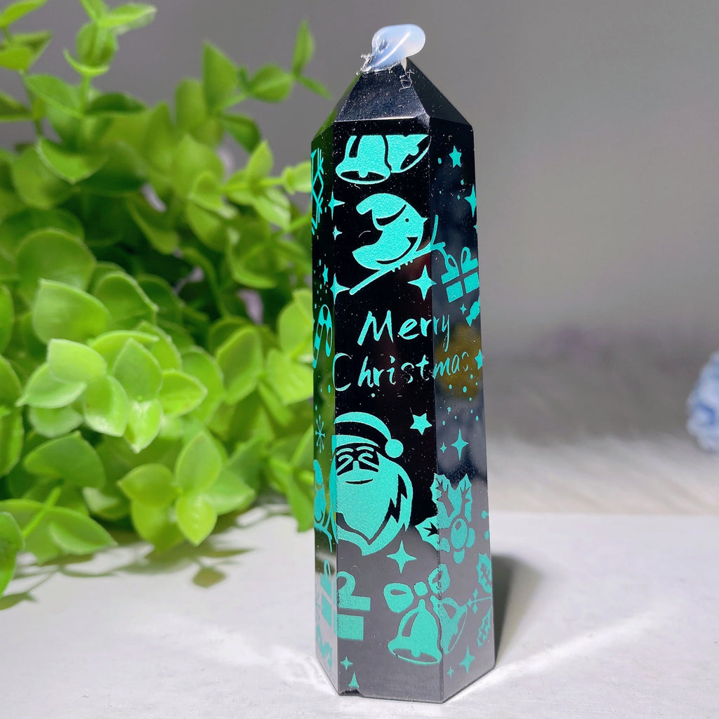 The festive prints are carefully applied to enhance the aesthetic without compromising the natural energy of the black obsidian. These vibrant designs celebrate seasonal joy while preserving the stone's healing properties.