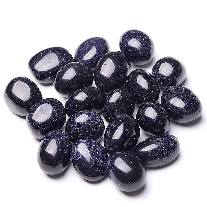 Discover the captivating beauty of our Blue Sandstone tumbled stones—a remarkable addition to any crystal collection. These polished tumbled gemstones showcase a mesmerizing midnight blue backdrop adorned with glistening silver specks that mimic the stars in a night sky. Each piece in this collection of tumbled stones measures between 2.5-3.5cm, making them perfect for palm meditation, crystal grids, or display purposes.