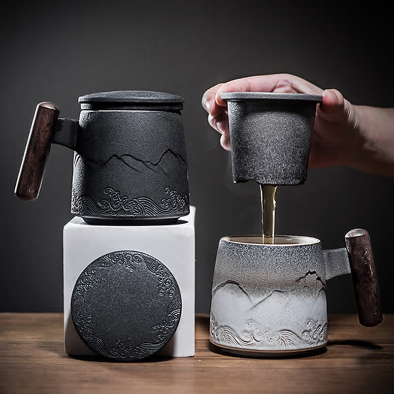 This vintage ceramic teacup embodies the calming energies of nature, inspired by the harmonious interplay of mountains and sea. Its design promotes tranquility and mindfulness, perfect for tea rituals that foster relaxation and spiritual balance.