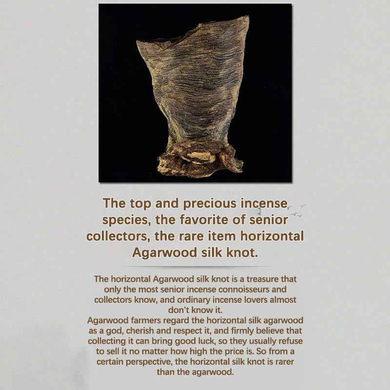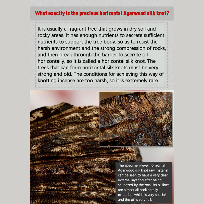Agarwood from Brunei is considered among the most precious meditation practice tools in spiritual traditions. The horizontal silk knot variety featured in this mala is exceptionally rare—formed only when trees grow through extreme conditions in rocky soil, creating uniquely patterned oil lines that flow horizontally through the wood. This special formation process makes each bead not just a meditation tool, but a natural wonder.