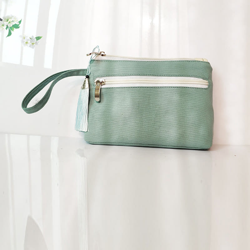This wallet features beautiful embroidery of plum blossoms, cherry blossoms, cranes, and peach blossoms, each symbolizing beauty, longevity, and prosperity. Carrying it invites positive energy and cultural elegance into your daily life.