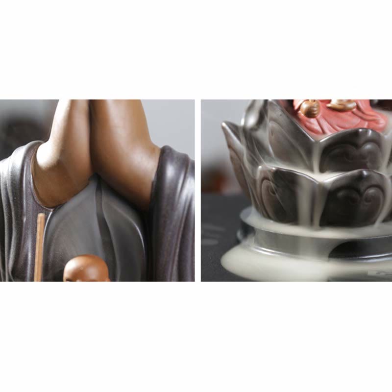 Ceramic Lotus Blessing Backflow Incense Burner with Buddha Deities