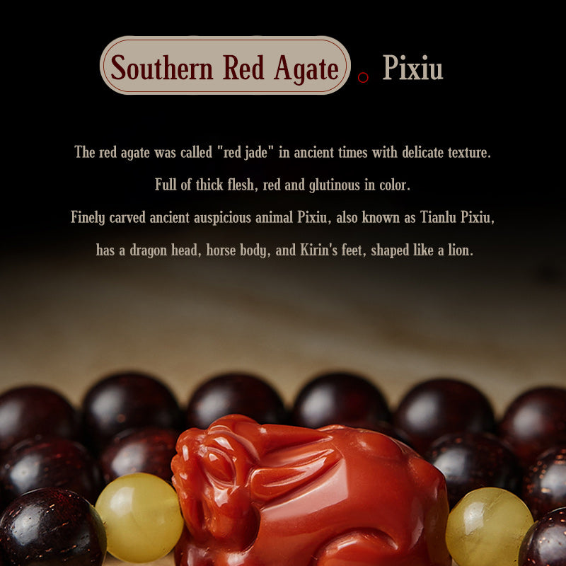 This exquisite 108-bead mala features premium red sandalwood and red agate, enhanced with a protective PiXiu charm to ward off negative energies while drawing in prosperity. Each bracelet is meticulously crafted to align with your specific Chinese zodiac sign, creating a powerful spiritual connection.