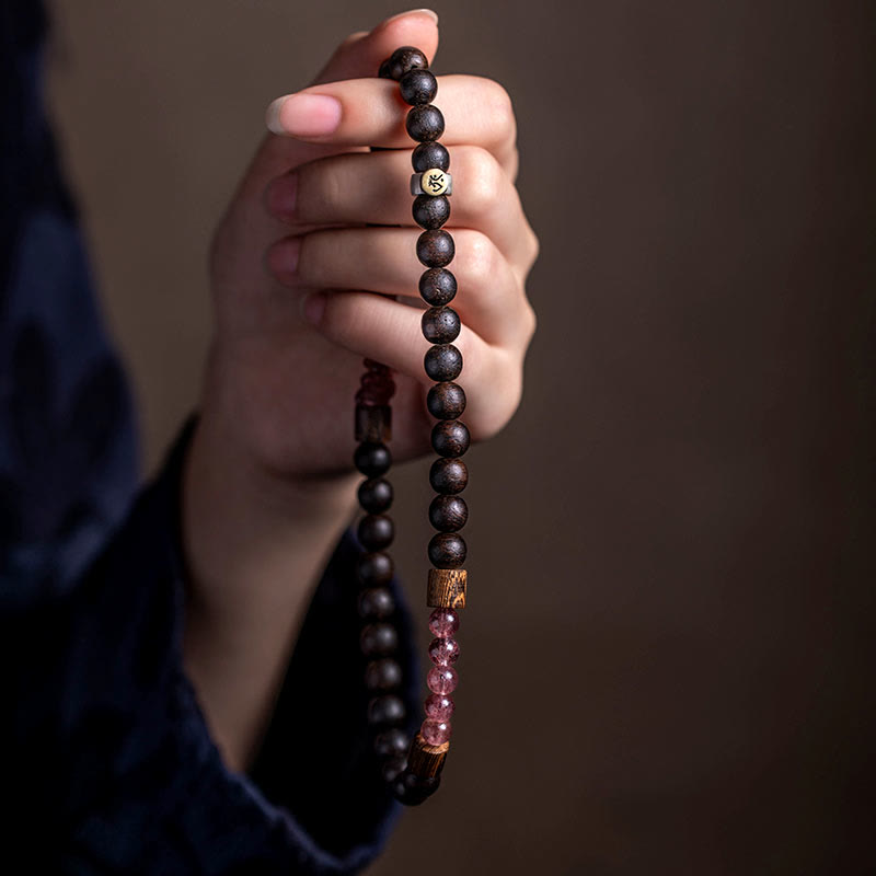 This bracelet combines agarwood, strawberry quartz, and sterling silver to promote peace, love, and balance. Agarwood calms the mind and drives away negative energy, while strawberry quartz fosters loving energy and emotional healing, supporting your spiritual journey.