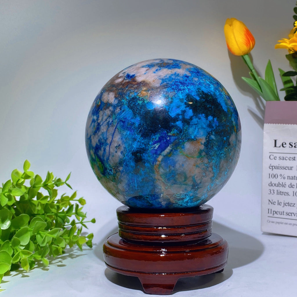 The colors may vary slightly due to different screen resolutions. Each chrysocolla sphere features unique natural blends of blue, turquoise, black, and earth tones, making yours truly one-of-a-kind.