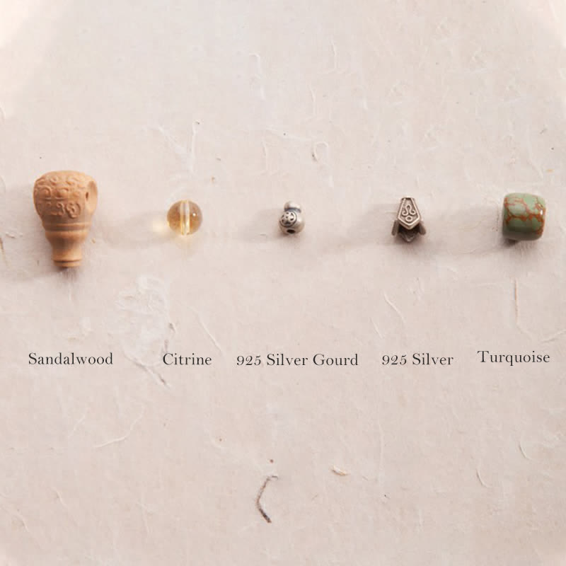 The combination of Citrine with Turquoise (known for protection) and Sandalwood (recognized for its calming properties) creates a harmonious energy field that supports both intention setting and everyday wear. Sterling Silver elements add both beauty and energetic conductivity to this exceptional piece.