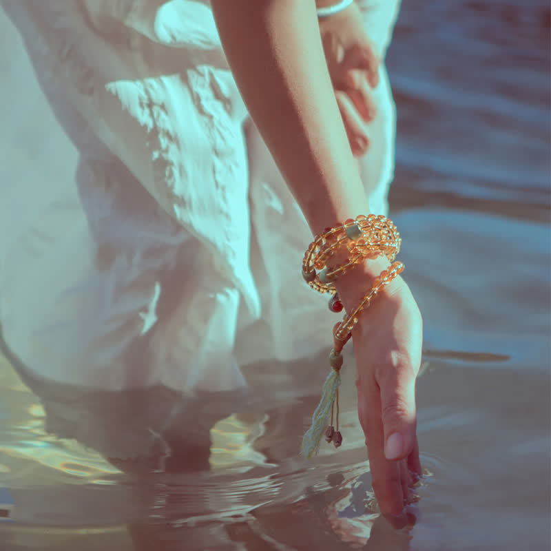 To preserve the beauty and energy of your gemstone mala bracelet: