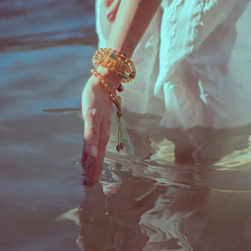 In the tradition of 108 bead malas, practitioners typically recite a mantra 108 times, using each bead to keep count. This bracelet design makes it easy to incorporate this practice into your daily routine. Hold each bead between your thumb and middle finger, reciting your chosen mantra or affirmation as you move from one bead to the next.