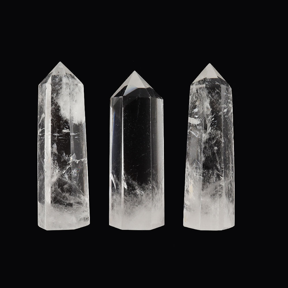 This set includes three crystal points, each measuring between 2.5 and 3 inches (approx. 6.35 and 7.62 cm). Their size makes them ideal for handheld use in meditation or as decorative energy tools.