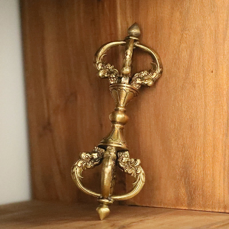 This copper meditation dorje symbolizes spiritual power, balance, and self-care. Copper grounds and transfers vibration frequencies, promoting communication with higher realms and cleansing the aura for positive energy flow.