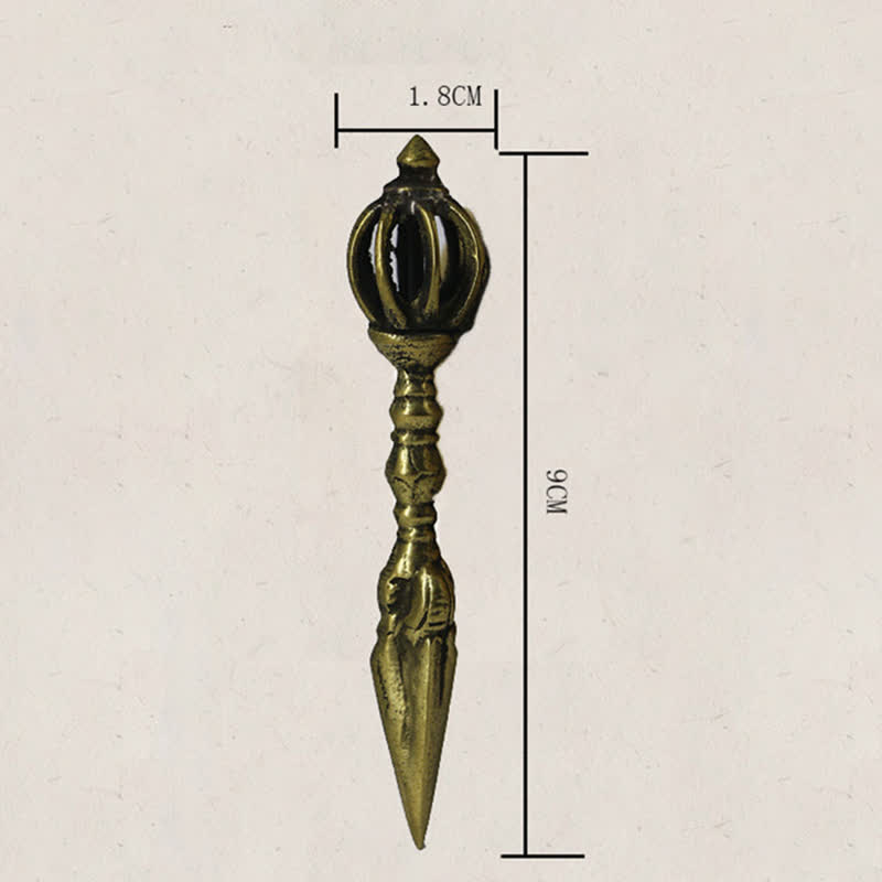 This copper dorje serves as both a functional ritual tool and a meaningful decorative element for your meditation area or altar. Its presence honors the ancient lineage of Buddhist sound healing and provides a focal point for spiritual practice. Many practitioners pair this dorje with a corresponding bell to create a complete set of Buddhist ceremonial instruments, though it stands powerfully on its own as a symbol of spiritual determination.