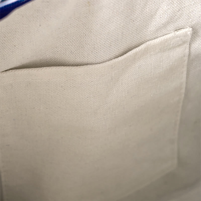The bag is crafted with durable cotton fabric, ensuring long-lasting use and comfort. Its natural material also makes it eco-friendly, ideal for everyday wear.