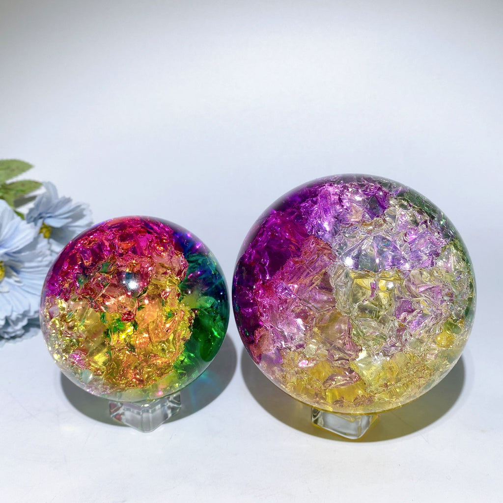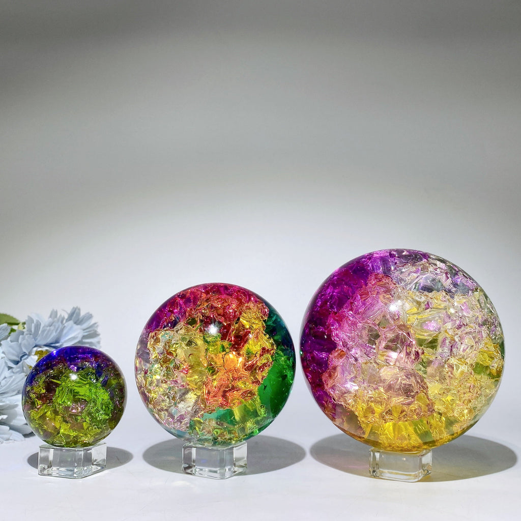 Our crack glass crystal spheres are believed to amplify energy, aid meditation, and bring clarity. Their unique fractured texture enhances spiritual connection and energy flow.
