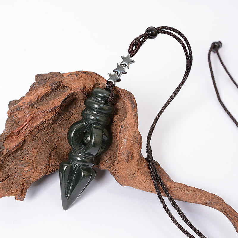 The Cyan Jade in this necklace promotes success, healing, harmony, and calmness. The vajra pendant symbolizes enlightenment and spiritual power, helping to strengthen your wishes and bring positive energy throughout your life.