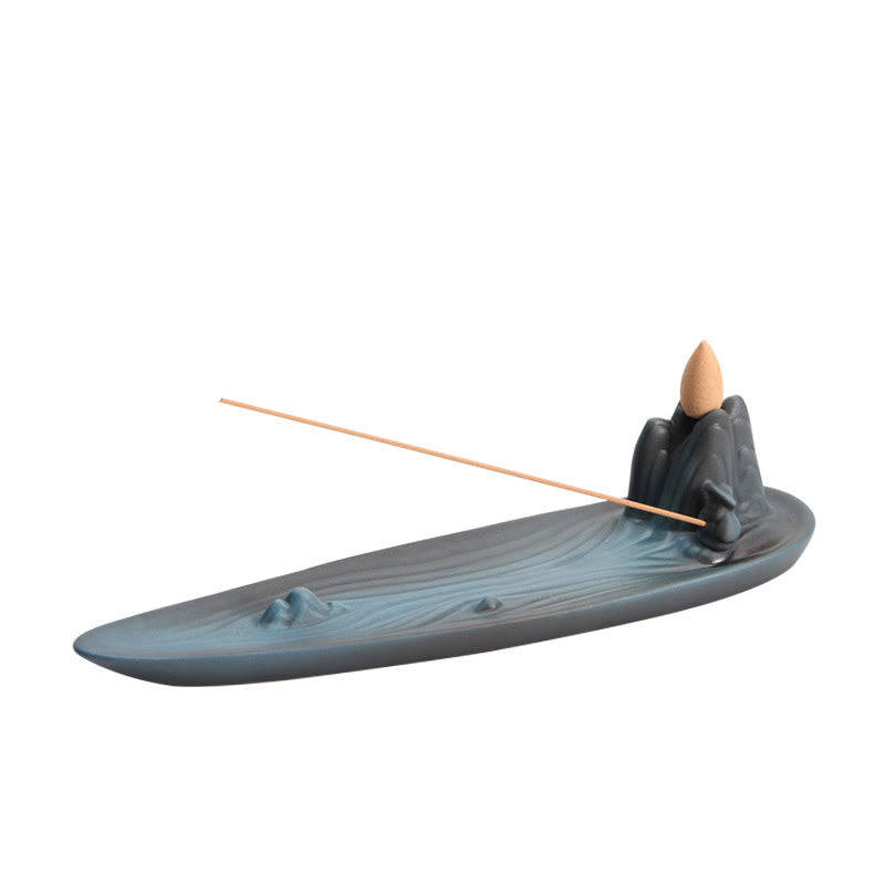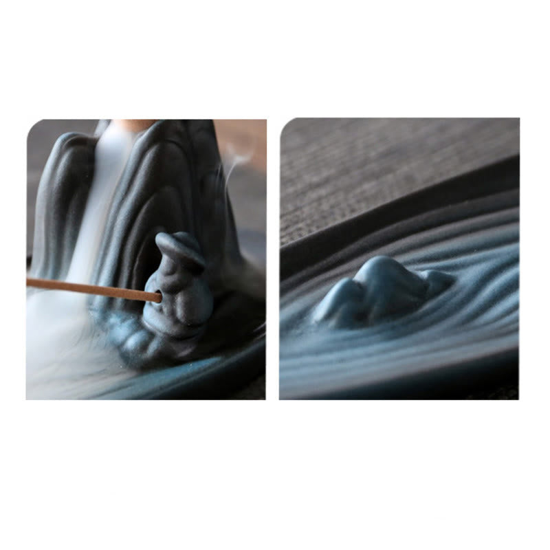 Each burner showcases delicate detailing and a mountain-inspired backdrop that creates a serene landscape for your incense practice. The natural ceramic composition ensures heat resistance and longevity, making this piece a treasured addition to your collection of meditation tools.