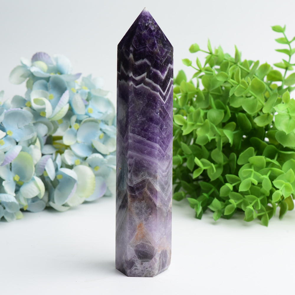 The Dream Amethyst Crystal Tower is known for promoting calm, balance, and spiritual clarity. It helps in meditation, cleansing energy fields, and enhancing intuition, making it a powerful tool for spiritual growth.