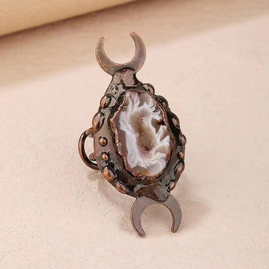 The druzy agate in this ring is known for promoting emotional balance and calming energy. It's a powerful crystal for grounding and enhancing meditation, helping you find peace and focus in your daily life.
