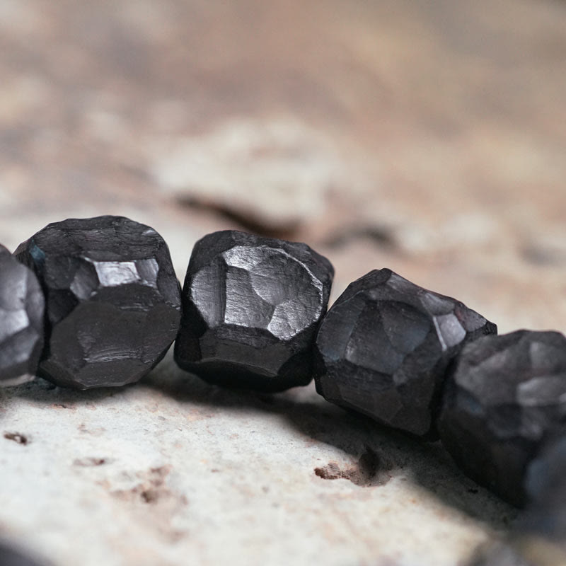 To maintain the copper's shine, wipe it daily with a soft cloth and wash gently with water if necessary. Avoid sleeping or showering with the bracelet to preserve the ebony wood and overall energy.