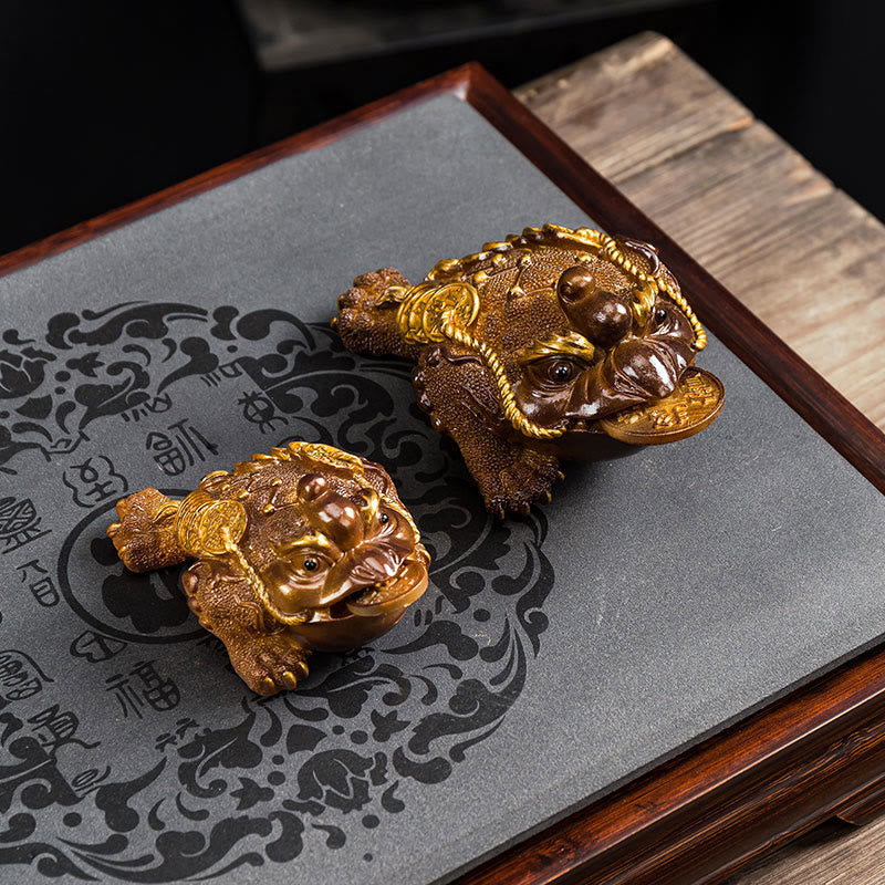 The Feng Shui frog in this resin tea pet is a powerful symbol of luck, prosperity, and wealth. It is traditionally used in Feng Shui to attract financial abundance and positive energy into your home, helping create a harmonious and prosperous environment.