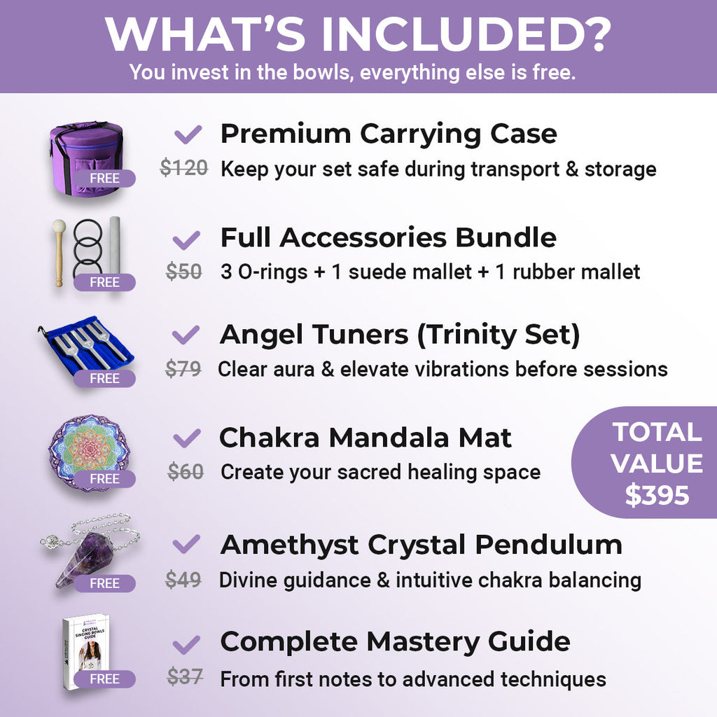 - ✅ Free Crystal Singing Bowl Guide (eBook)—playing techniques, care instructions, and meditation practices