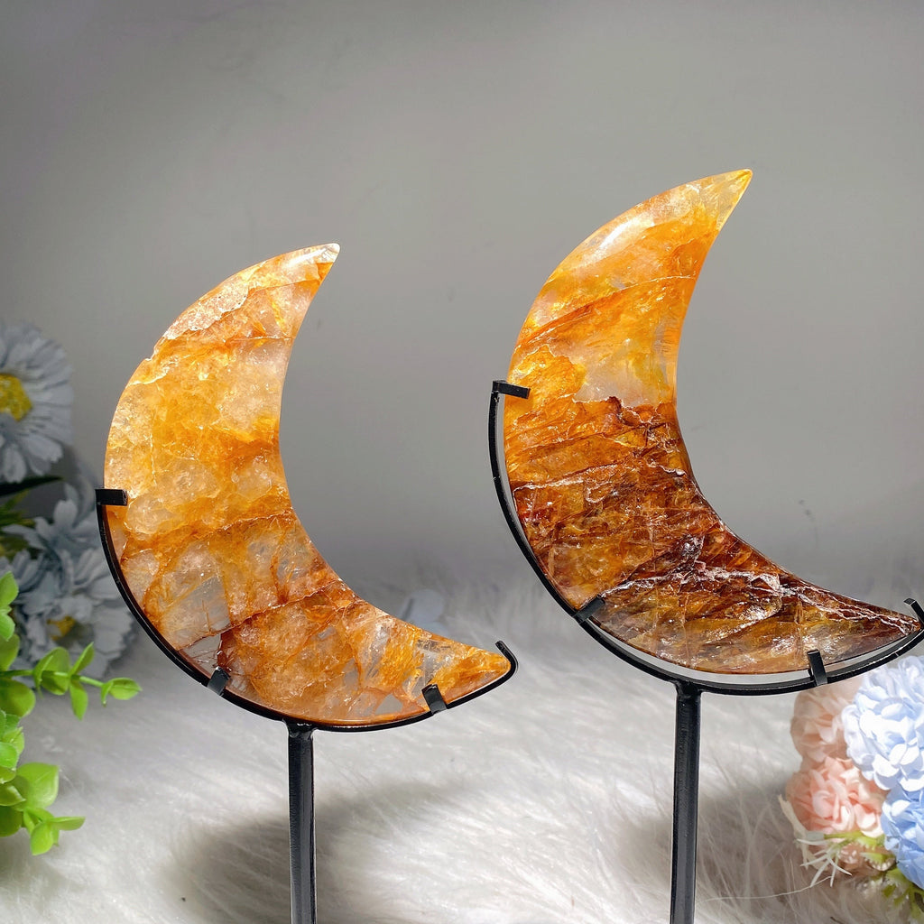 The Golden Healer Moon crystal is known for its spiritual cleansing, energy amplification and connection to higher consciousness. This beautifully carved crystal shape supports meditation and healing practices by promoting clarity and balance.