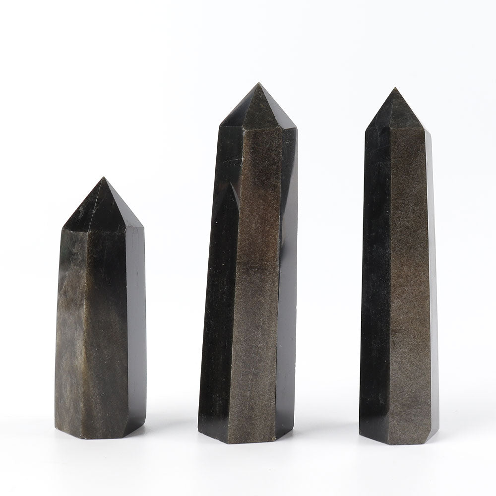 The Golden Obsidian Tower is known for its powerful protective and grounding energies. It helps cleanse negative energy and promotes energy balance, making it ideal for meditation and spiritual healing rituals.