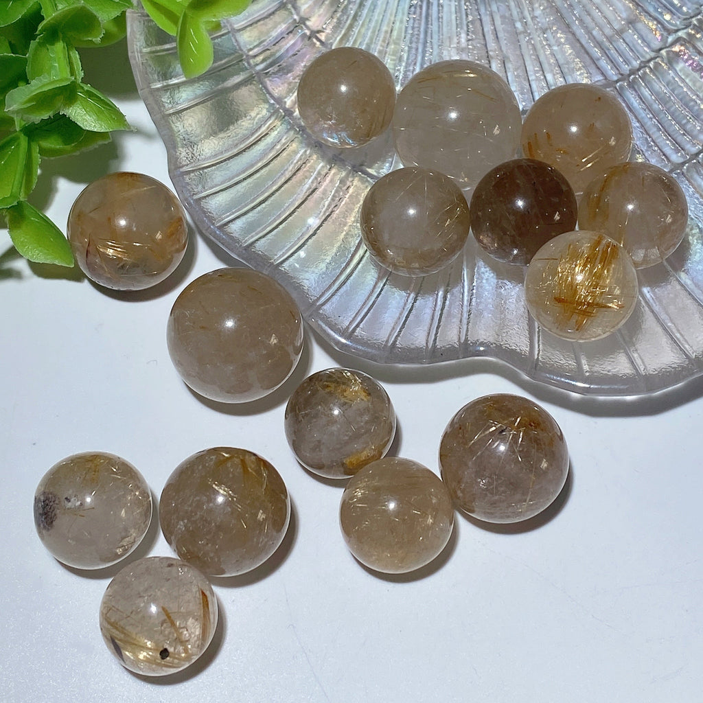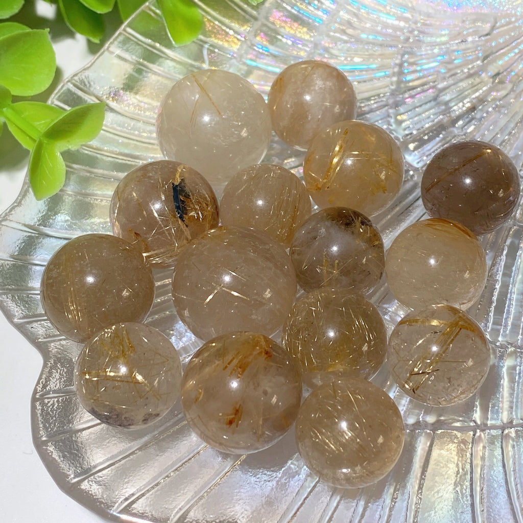 The golden rutilated quartz sphere is cherished for its ability to amplify energy, promote clarity, and enhance spiritual growth. The golden rutiles within the quartz help to energize and cleanse the aura, supporting emotional healing and mental focus.