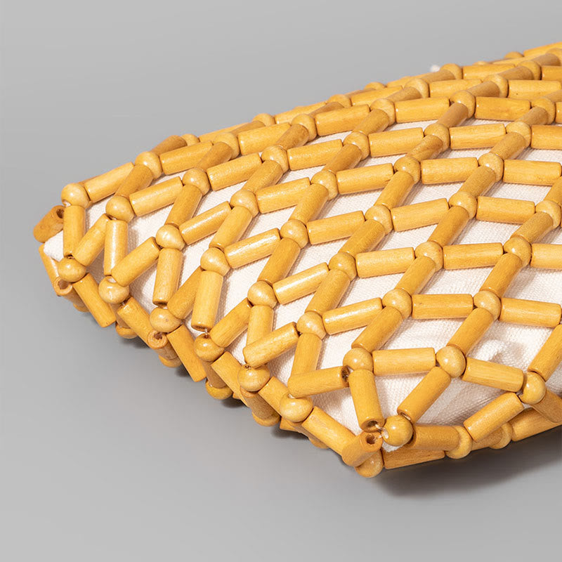 This hand-woven mesh wooden beads handbag combines natural materials with artisanal design, offering a spiritually uplifting accessory. The wooden beads are believed to promote grounding energy and enhance connection to nature's calming rhythms, making it a beautiful companion for mindful outings.