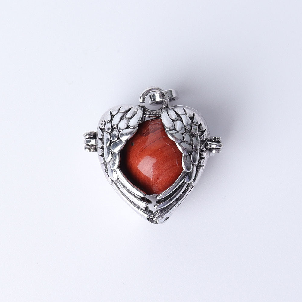 The pendant comes in various natural stones including Clear Quartz, Red Jasper, Blue Sandstone, Opalite, and more, each polished into a lovely heart shape.