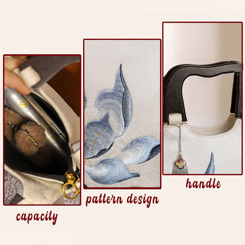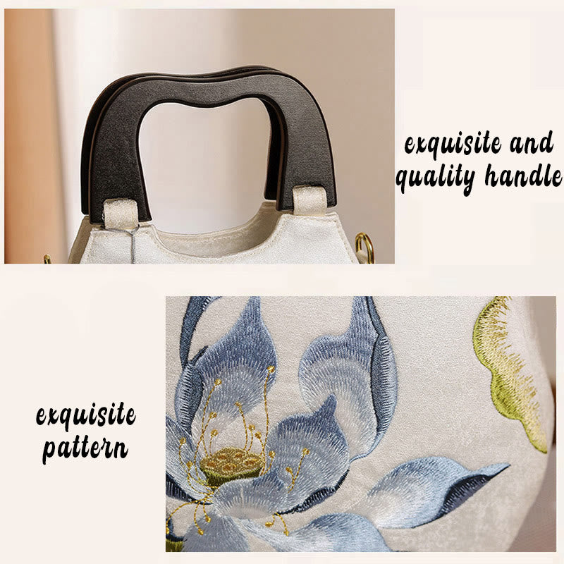 Discover the essence of spiritual jewelry in fabric form with our exquisite Lotus Embroidery Handbag. This elegant crossbody creation carries both practical functionality and deep symbolic meaning, allowing you to express your spiritual journey through your everyday accessories. Meticulously crafted with traditional embroidery techniques, this bag showcases the sacred lotus flower – a universal symbol of purity, enlightenment, and spiritual awakening.