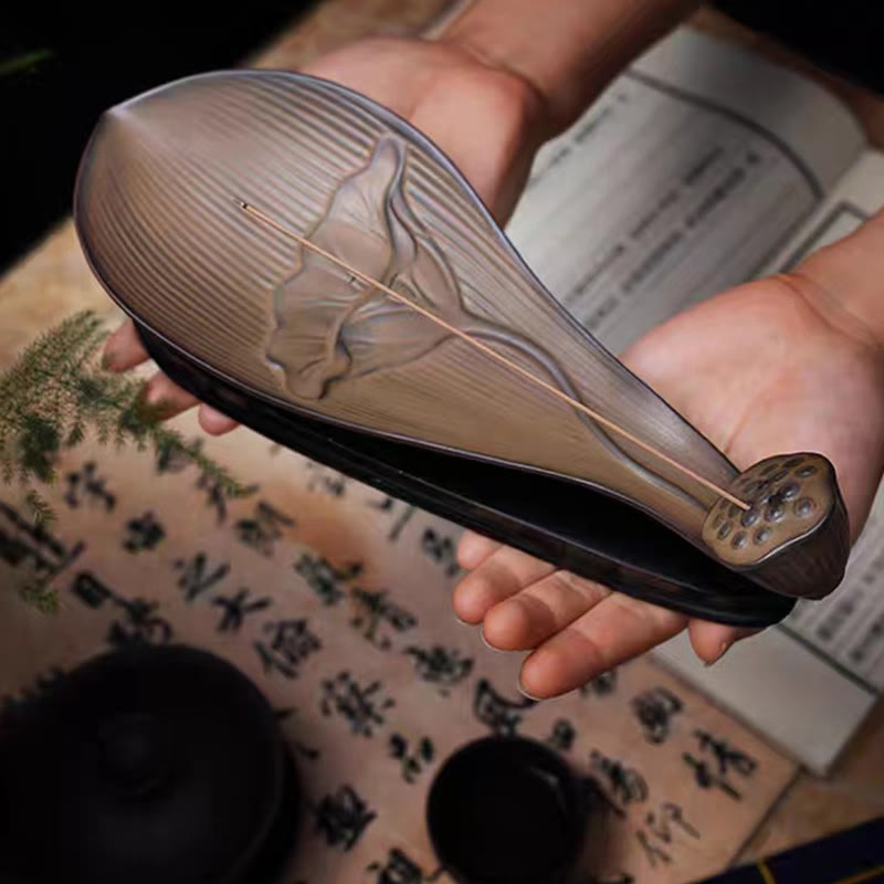 The elongated design (24cm) of this ceramic incense tray provides ample space for incense sticks to burn safely, with the ash collected neatly within the lotus pod cavities. This thoughtful design prevents mess while maintaining the burner's artistic integrity.