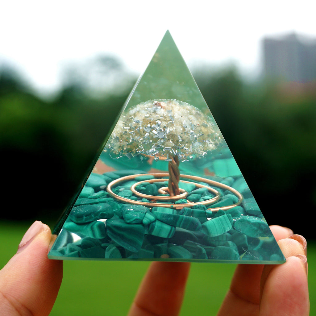 The orgone pyramid form of the Manifesting Magic Malachite Pyramid merges historic sacred geometry concepts with natural malachite. This design is traditionally viewed as promoting the flow of positive vibrations in an environment. Placed in homes, offices, or meditation areas, it is valued as an emblem that may support a serene atmosphere conducive to contemplation and balance. Including this orgonite pyramid can enrich your environment and support tranquility aligned with your spiritual practices.