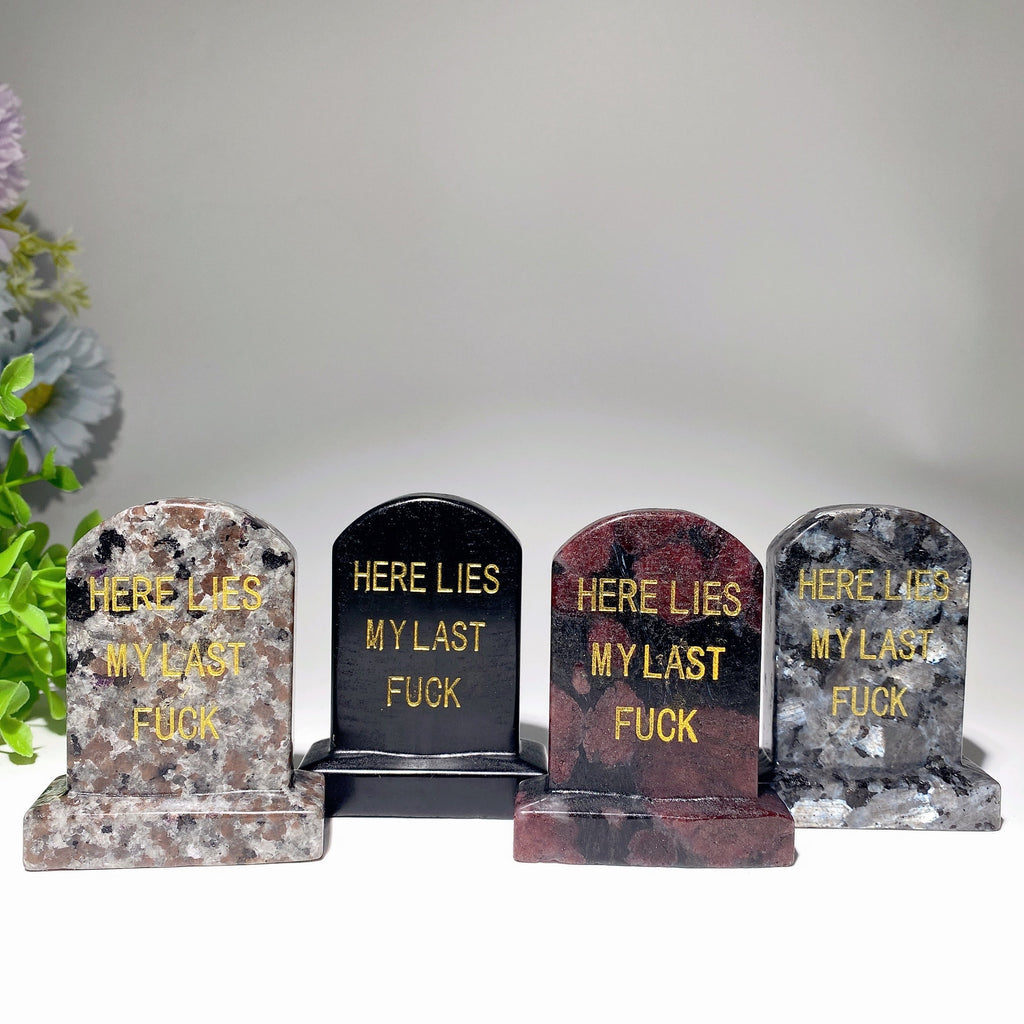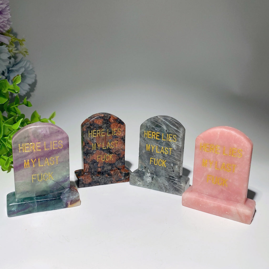 This unique tombstone features mixed crystals including Rose Quartz, Sodalite, Clear Quartz, Labradorite, and Black Obsidian, among others, each bringing its distinct energy and beauty to your space.