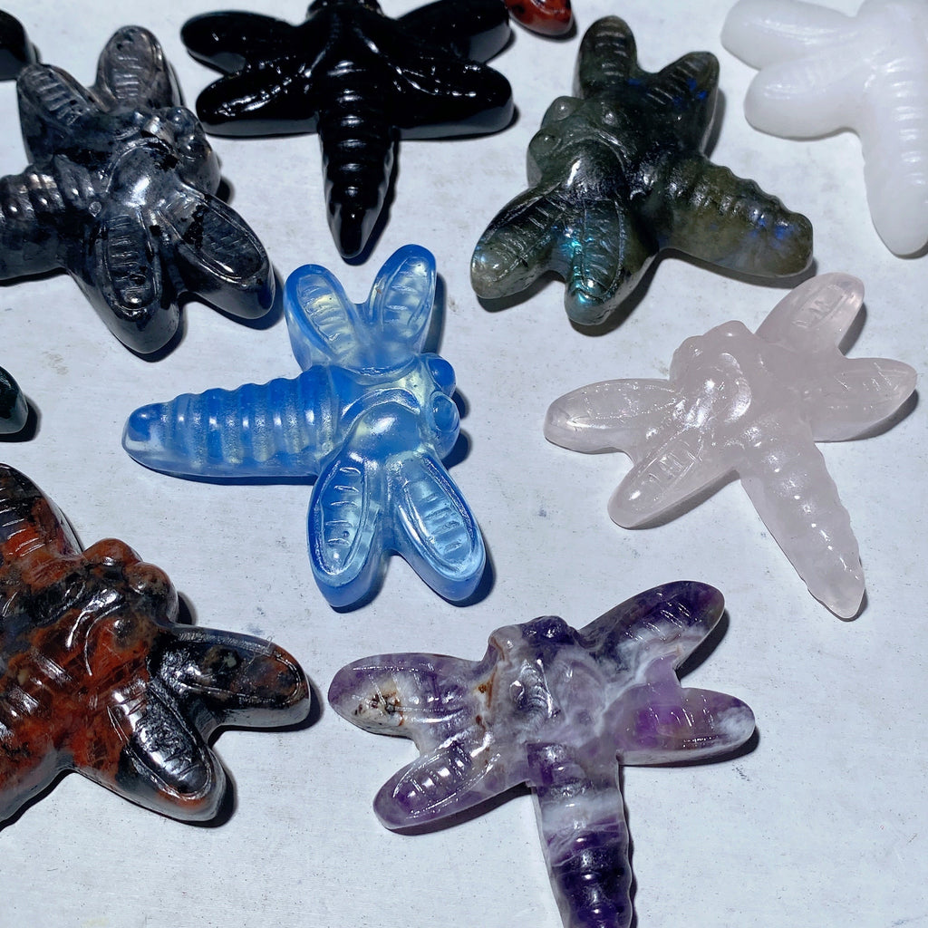These mixed crystal dragonfly carvings combine the unique energies of stones like Jade, Rose Quartz, and Labradorite to promote healing, protection, and transformation. The dragonfly symbolizes change and self-realization, making these carvings powerful tools for meditation and spiritual growth.